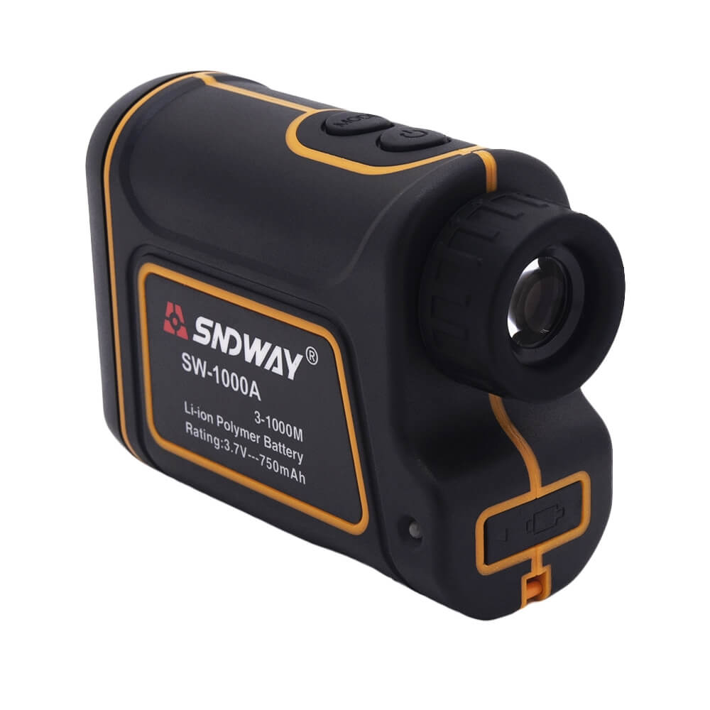 Ручной лазерный дальномер для измерения расстояний от 3 до 1000 метров с точностью до 1 метра. Длина волны инфракрасного лазера составляет 902 нм, он полностью невидим. Прибор позволяет рассчитывать углы и измерять скорость до 300 км в час. Может совмещаться с прицелом. Питание устройства осуществляется от встроенного аккумулятора.
