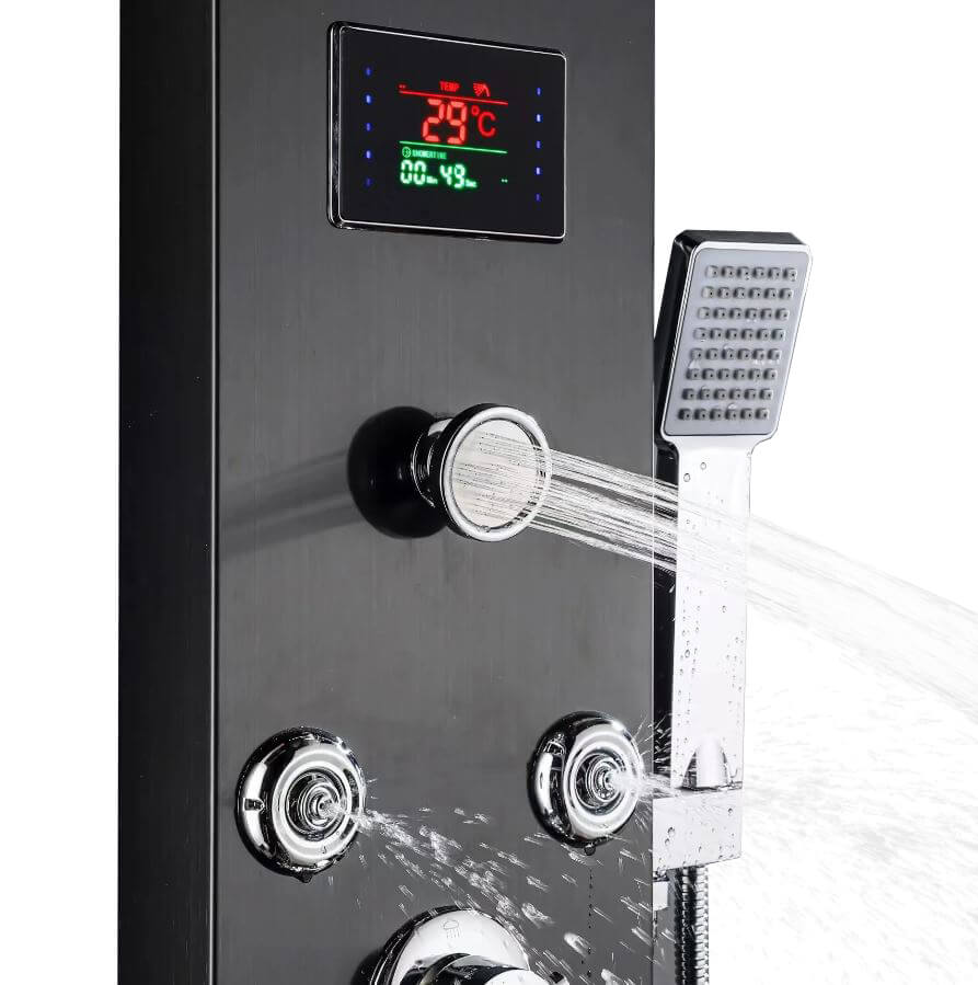 Душевая панель с цифровым дисплеем и LED подсветкой Riu черная
