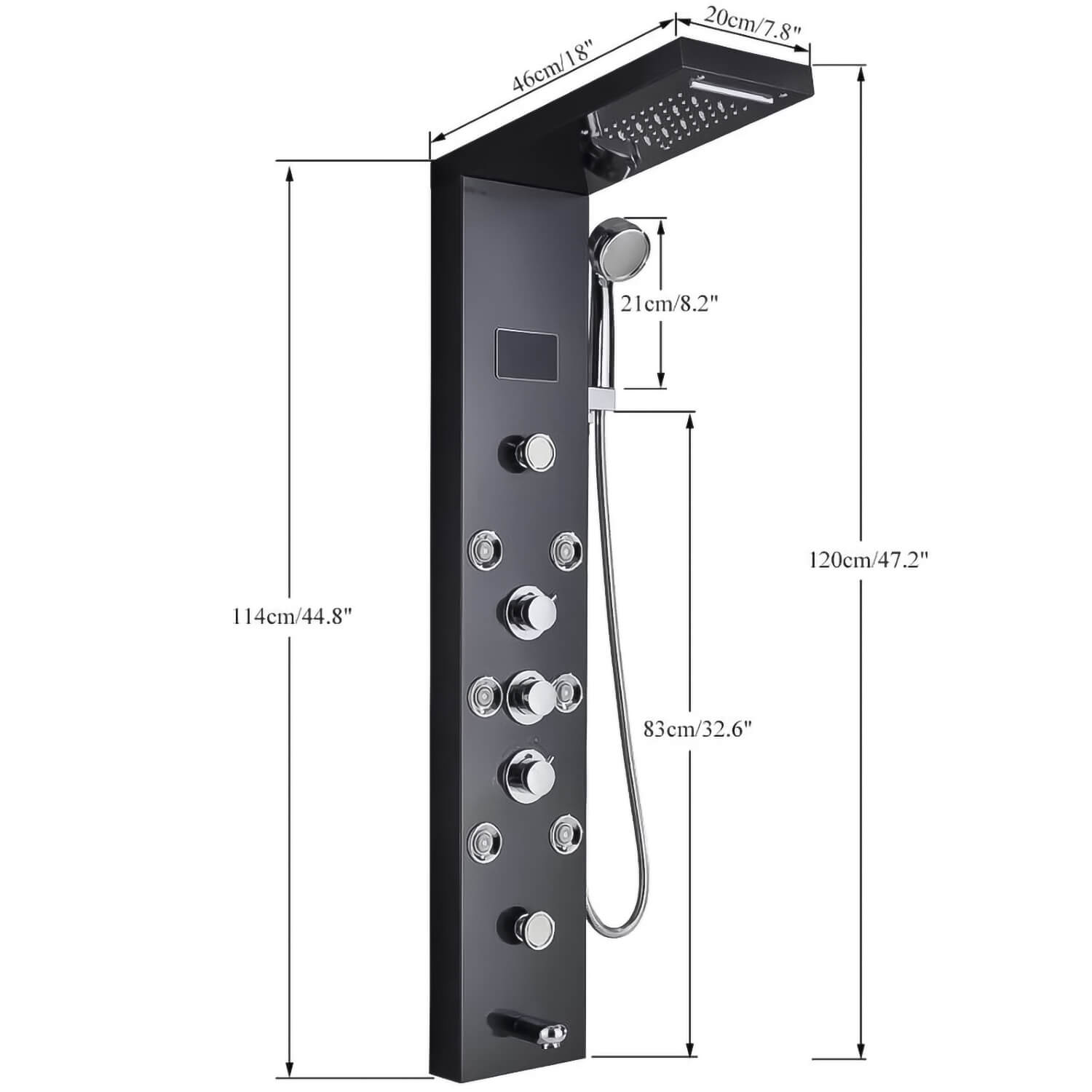 - Длина душевой панели:46 см